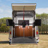 - Gas strut assisted rear opening ramp with rubber matting